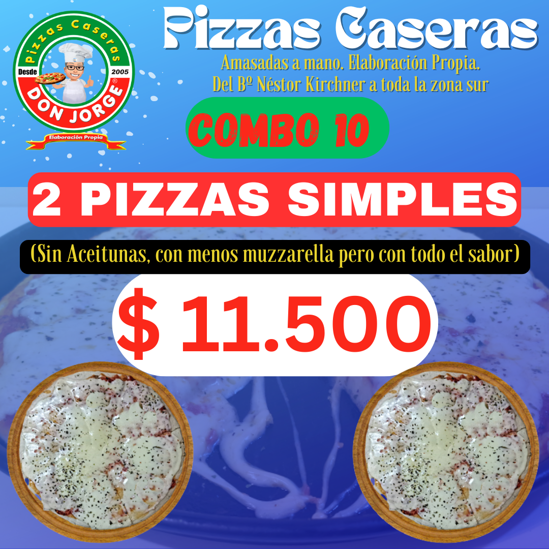 2 pizzas simples (2 pizzas en total)