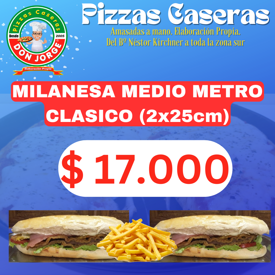 2 tremendos sandwiches de milanesa clásicos de 25cm c/u. Incluye Papas Fritas.