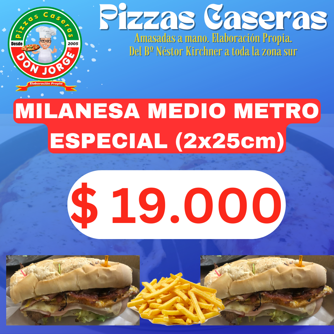 2 tremendos sandwiches de milanesa especiales de 25cm c/u. Incluye Papas Fritas.